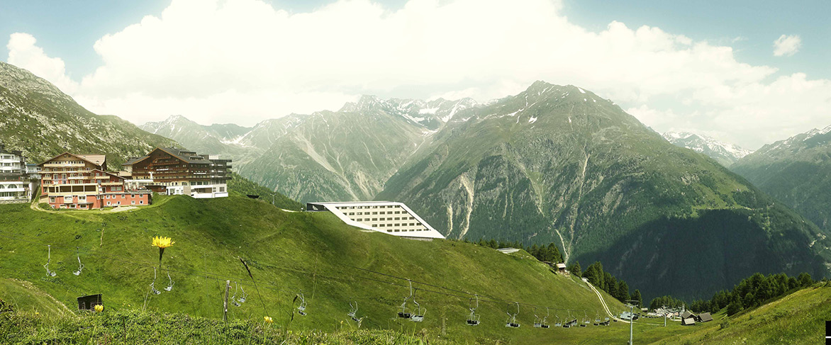 Das Personalhaus in Hochsölden passt sich architektonisch an die Hanglage an. Der traumhafte Ausblick in dieser Höhe auf die umliegenden Berghänge sind einzigartig.